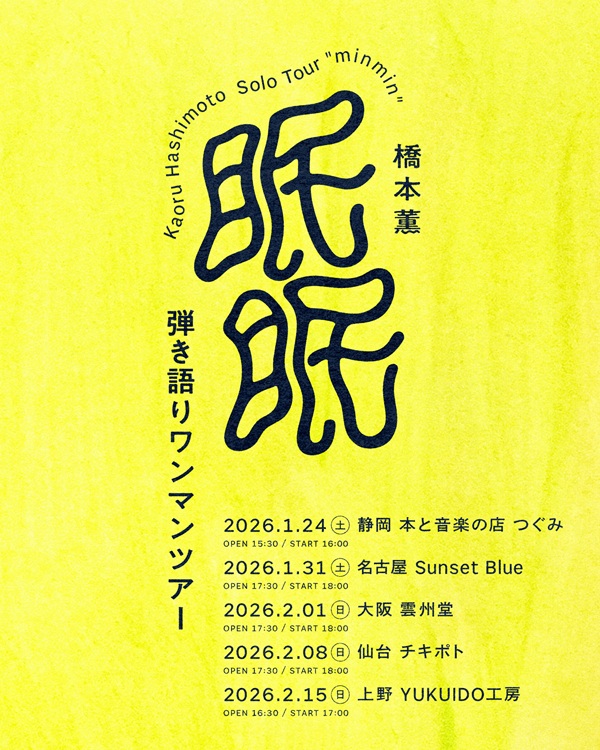 初の弾き語りツアー『眠眠』静岡公演を開催します